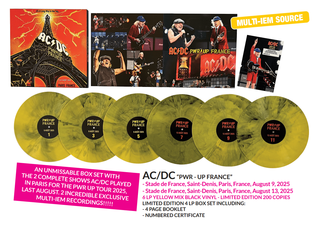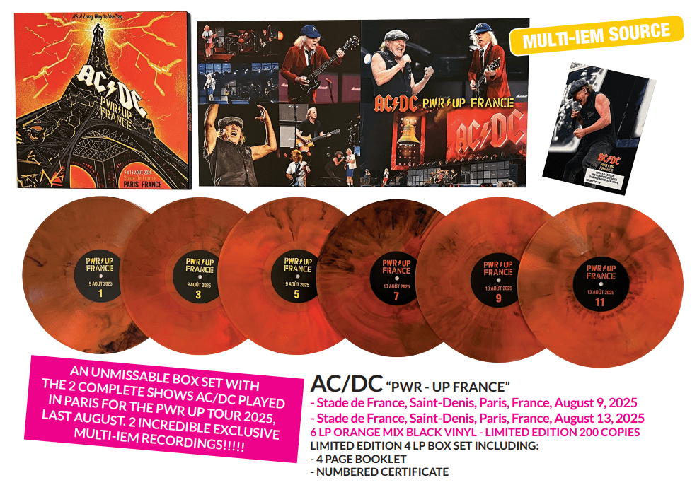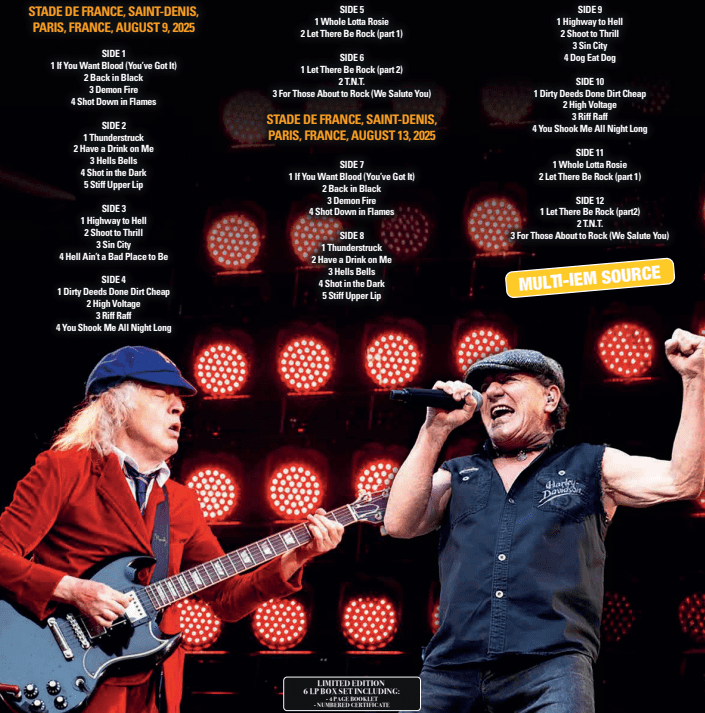 AN UNMISSABLE BOX SET WITH THE 2 COMPLETE SHOWS AC/DC PLAYED IN PARIS FOR THE PWR UP TOUR 2025, LAST AUGUST. 2 INCREDIBLE EXCLUSIVE MULTI-IEM RECORDINGS!!!!!- Stade de France, Saint-Denis, Paris, France, August 9, 2025