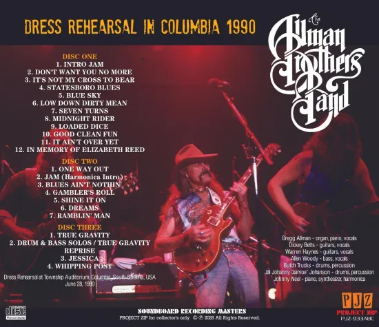 This 3-disc set presents the complete, high-quality stereo soundboard recordings of the rare rehearsal sessions held prior to the Allman Brothers Band’s 1990 tour, which preceded the release of their album Seven Turns. Unlike the relaxed atmosphere often found in studio rehearsals, this release fully captures a dress rehearsal performed in a live venue, replicating the intensity of an actual show. It stands as a highly anticipated title, offering one of the few existing recordings from this period that captures the band’s high-energy performances.