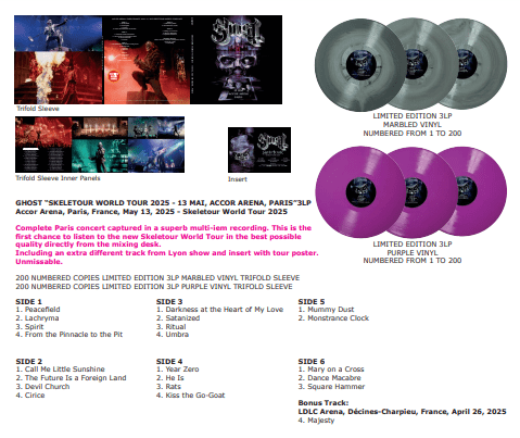 Including an extra different track from Lyon show and insert with tour poster.
