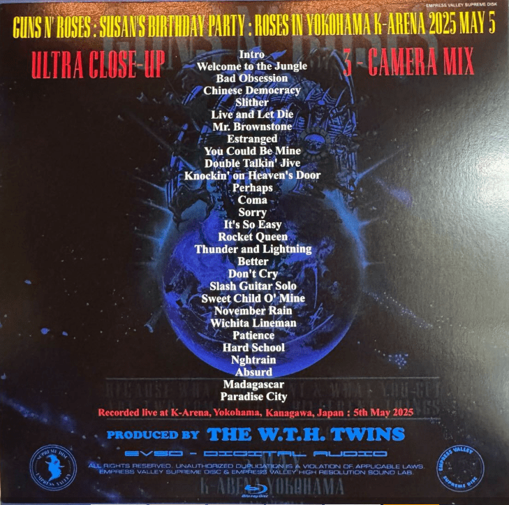 Live in K-Arena in Yokohama, Japan May 5, 2025. Includes bonus DVD and soundcheck CD.
