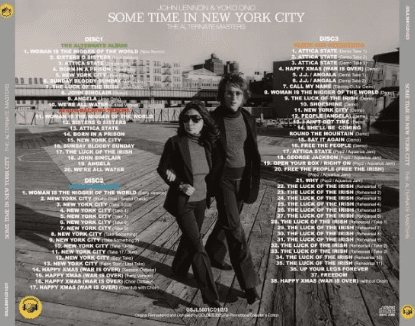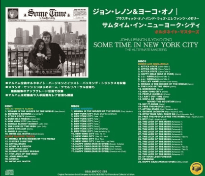 recordings Sometime in New York City, released in 1972 under the name of John Lennon & Yoko Ono/The Plastic Ono Band. Coming from a September 1971 move from the UK to New York City, where he became increasingly involved in the political movements of the counterculture era, this album is heavily politically charged, with tracks addressing political and social issues ranging from sexism and racism to prison riots, incarceration, and colonialism. Perhaps as a result, the album was initially criticized for its political content, panned by fans and critics alike, and branded a commercial flop. However, the melodic sense and quality of each track have since been reevaluated. The original album was released as a two-disc set, coupling the studio album with live jams. However, the live recording was removed from the CD reissue, and the box set omitted the controversial title of “Woman, Is She a Slave of the World?”, which was released as a single. “Sometime in New York City: Alternate Masters” features alternate versions of all the tracks from the studio album, as well as tracks not previously available on official releases, making it a rich and valuable collection. Disc 1, the “Alternate Album,” features all the album’s tracks in uniquely selected remixes, demos, and alternate versions. The second half