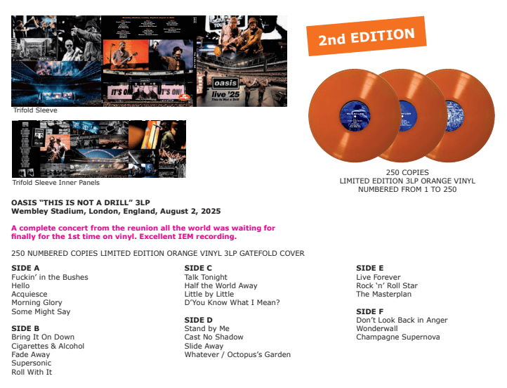 A complete concert from the reunion all the world was waiting for finally for the 1st time on vinyl. Excellent IEM recording.