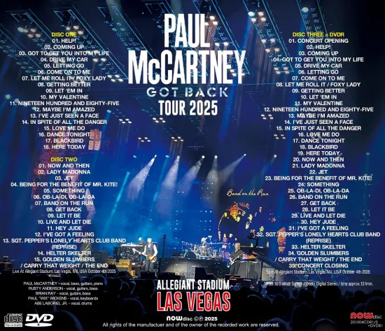 PAUL McCARTNEY – GOT BACK TOUR 2025: LAS VEGAS (2 CD-R + DVD-R)