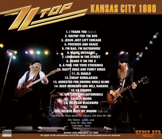 Recorded from a leaked stereo soundboard recording of ZZ Top’s March 8, 1980, performance at Kemper Arena in Kansas City, Missouri—part of their first U.S. tour in three years. Although the beginning and end fade in and out, this recording captures every song from that night’s setlist and is not to be missed. Recorded around the time they released their 1979 album *Deguello*—which featured “Cheap Sunglasses,” the anthem from their first release on Warner Bros. Records—this is an essential, newly unearthed soundboard recording of ZZ Top’s comeback performance, marking the start of their global success in the 1980s!